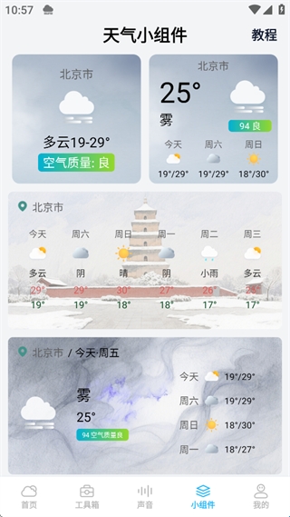 4、超多的天气小组件任你选择,一键添加到桌面,查看天气更方便。