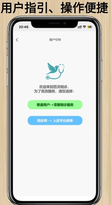 百灵陪诊是一款专业的医院陪诊服务软件。软件内陪诊人员都经过严格实名认证,并且持证上岗。软件内支持选择普通用户和陪诊师两种模式,有用户指引,操作简单又快捷。软件会进行全流程陪诊监管,可靠有保障。更有就医规划让用户省心又省力!