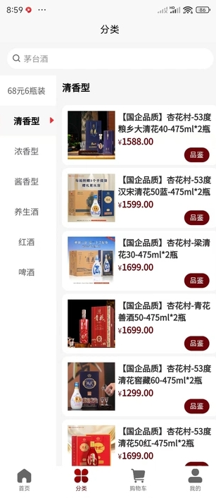 3、对于不同的酒品,软件中设计了分级非常细致的级别和价格分类。