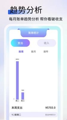 3、智能报表功能很强大,自动生成收支趋势图表帮助用户清晰掌握财务状况。