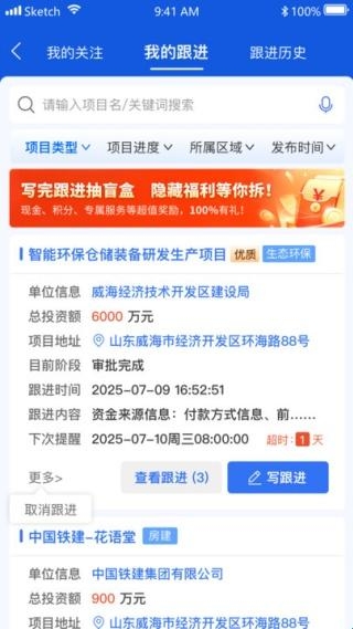 4、点击【我的跟进】就可以实时查看到项目跟进的情况。