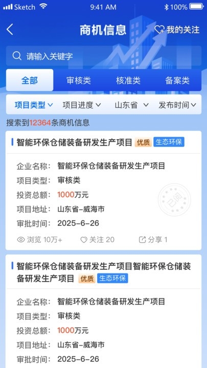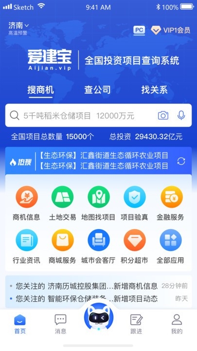 爱建宝是一款全国投资项目查询系统软件。软件内支持土地交易、项目验真、搜商机、查公司等多种查询服务。每日还会为用户推荐各种热搜内容,让用户能够第一时间了解到最新资讯。支持一键关键字智能搜索查找,快捷又方便!还能持续跟进项目哦!