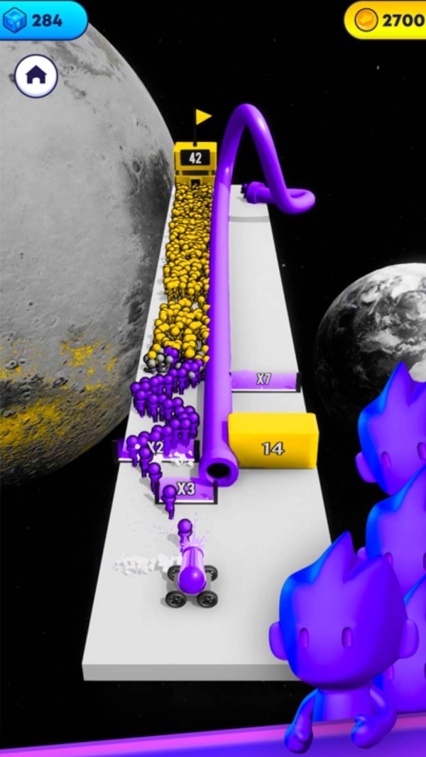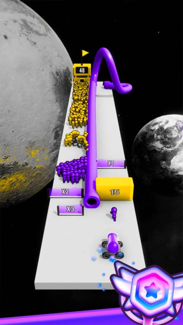 4、在狭窄地形关卡,玩家要精准控制大炮,让炮弹人集中通过有限的倍数门,避免兵力分散。