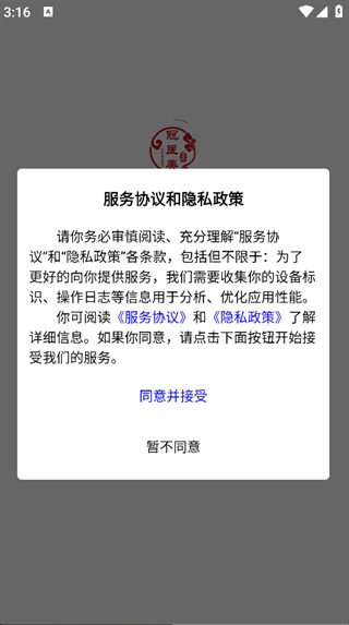 1、下载并安装后打开软件,点击同意并接受,即可进入登录页面。