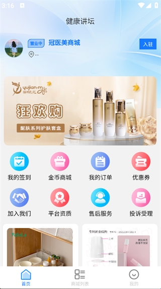 冠医美是一款美妆护肤用品专卖商城软件。软件内拥有海量高质量的护肤品售卖,品类齐全,功效多样,不管是补水保湿、抗皱抗衰还是美白亮肤等都应有尽有。软件内每天还可以领取大额优惠券在下单前使用。软件内有专业的售后服务和投诉受理,保护用户消费权益!