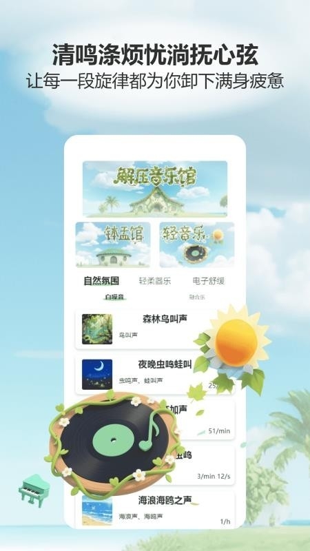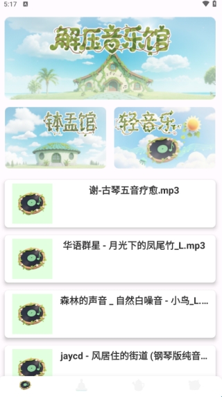 2、进入到首页,提供解压音乐馆、轻音乐等服务,大家都能自由选择。