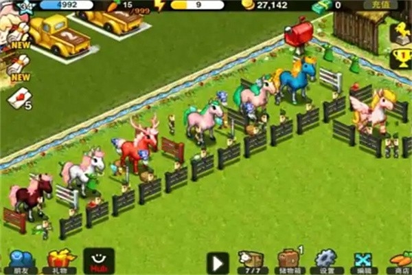 1、马场装饰系统:解锁栅栏、喷泉、遮阳棚等百种设施,自由设计美观且高效的养殖环境。