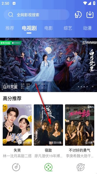 2、你可以在其中任意的进行内容搜索,寻找你兴趣的资源,一键即可获取观看;