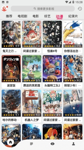 2、进入到软件主界面,我们能够看到非常清爽的界面,在这里分布有最新最热门的电视剧、电影、综艺、动漫、纪录片作品。