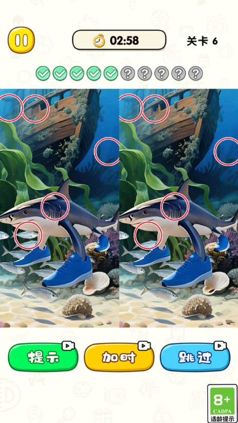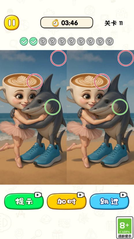2、游戏过程轻松解压,找到差异的瞬间带来满满成就感;