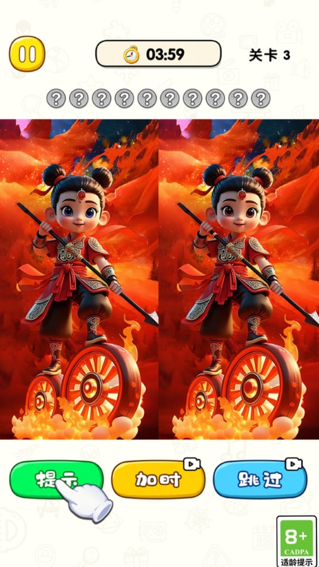 3、遇到困难时可以使用提示功能,系统会自动标出一个差异点;