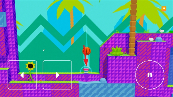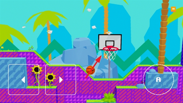 2、左右控制方向,A键可以跳的跟高,跳到篮筐之中就可以了。