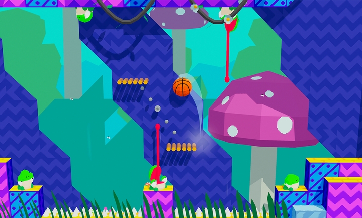 1、独特的游戏机制:玩家需要变成篮球,在墙壁、地板和天花板上弹跳,以冲过各种障碍和敌人。