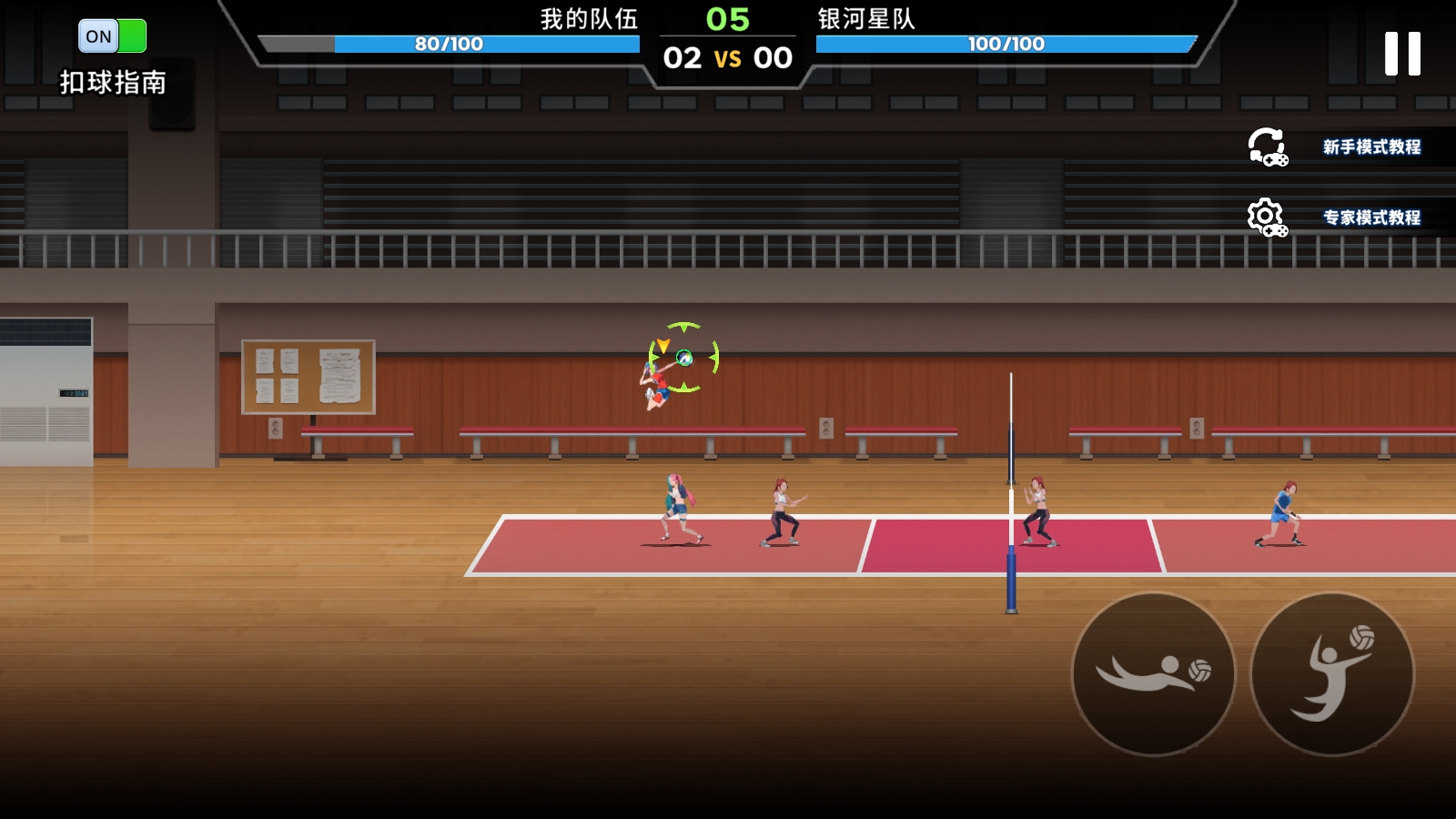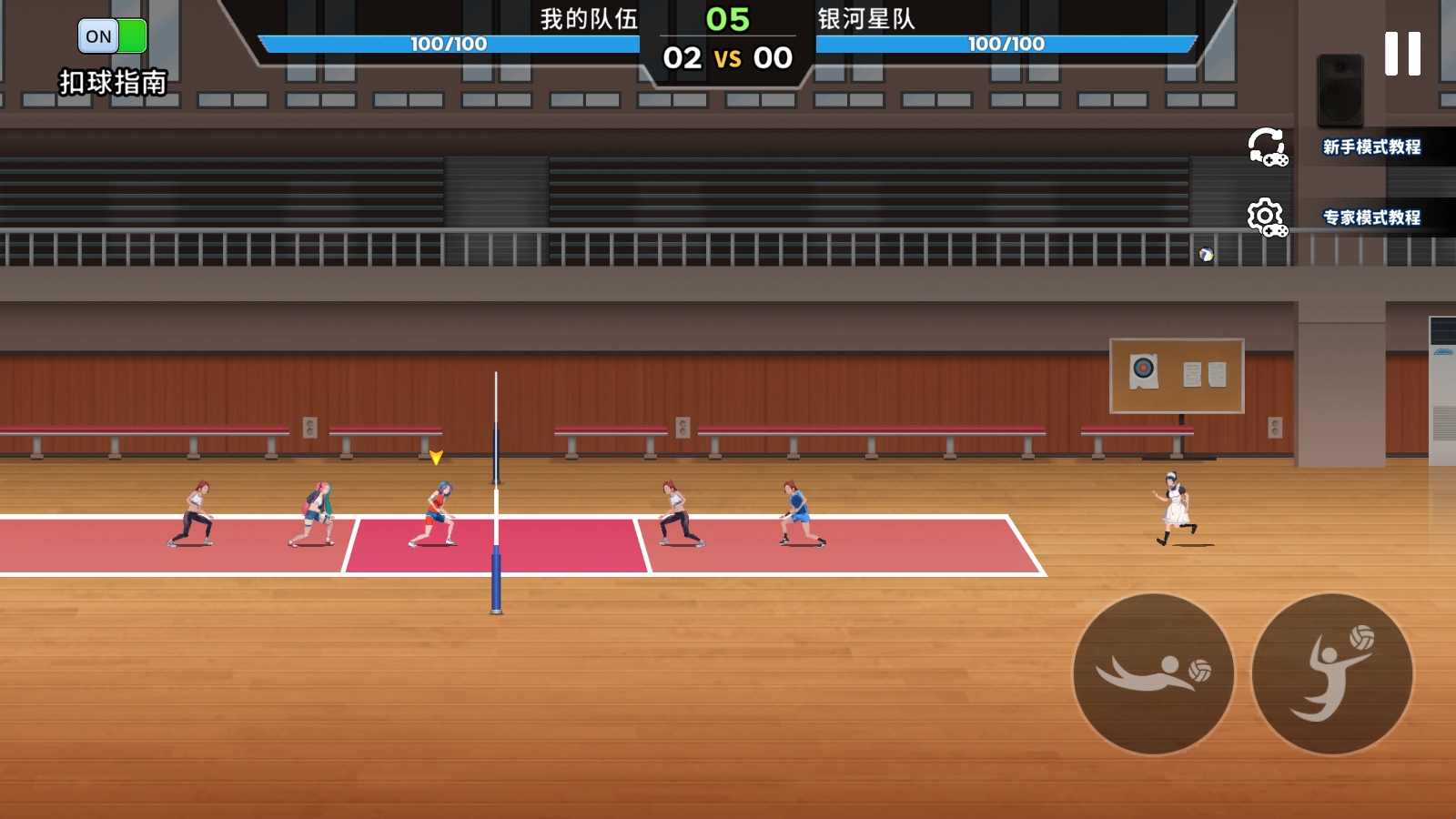 1、打开游戏右下角第一个低发球、第二个跳跃发球