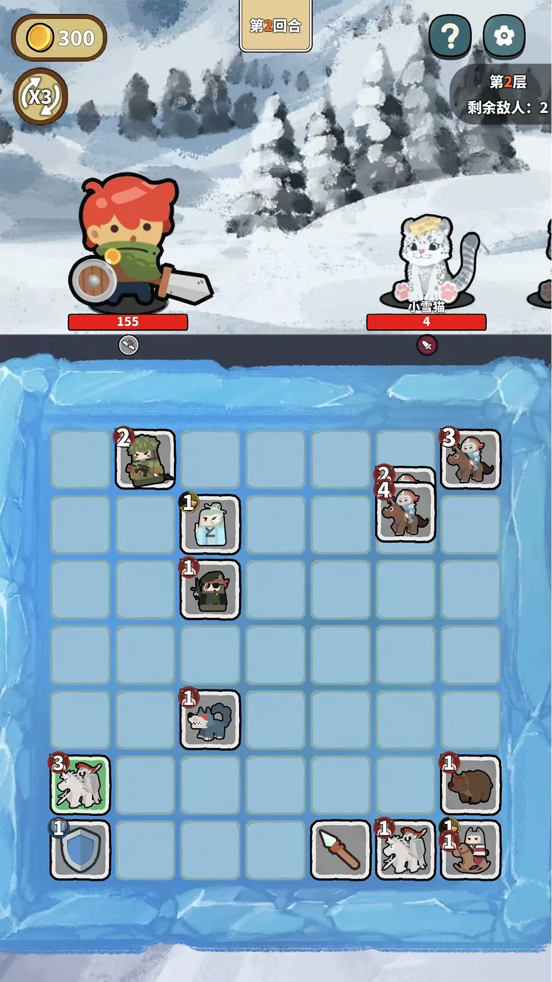 3、通过组成三个相同的低级棋子,玩家能够创建强壮的高档棋子,增强力量。