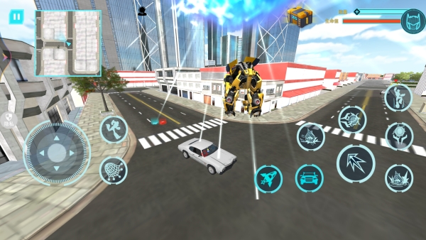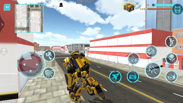 2、玩家通过虚拟摇杆控制机甲移动,点击按钮实现形态切换与武器释放。这种操作方式简单直观,适合各年龄段的玩家;