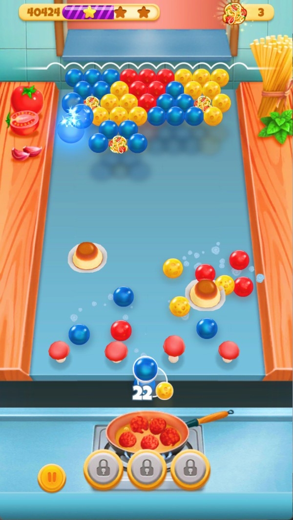 1、巧妙融合经典泡泡龙玩法与美食收集元素,带来双重乐趣。