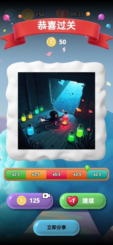 4、当遇到困难时,可使用提示功能获得帮助,每天有体力限制,健康游戏的同时享受小章鱼墨墨与小女孩之间温馨的友谊故事。