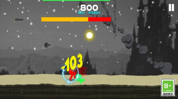1、采用经典火柴人画风,动作设计流畅夸张,战斗特效简洁而富有冲击力。