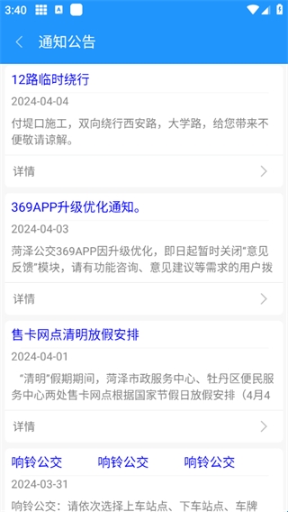 菏泽公交369是针对山东菏泽地区打造的一款公交出行软件,为大家的出行带来了极大的便利。不管是上班通勤还是日常出行都是可以使用该软件的,诠释所有的公交线路信息都是可以看到的,轻松查询公交的运行路线以及实时停靠站点。为用户提供到站提醒功能,防止大家做过站,输入起始点名称就可以快速获取最佳的乘车线路。