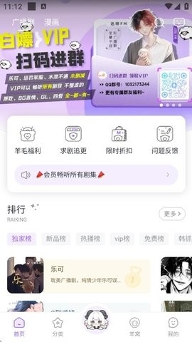 2、成功进入首页之后,我们可以看到丰富的独家榜,热播榜的广播剧资源。