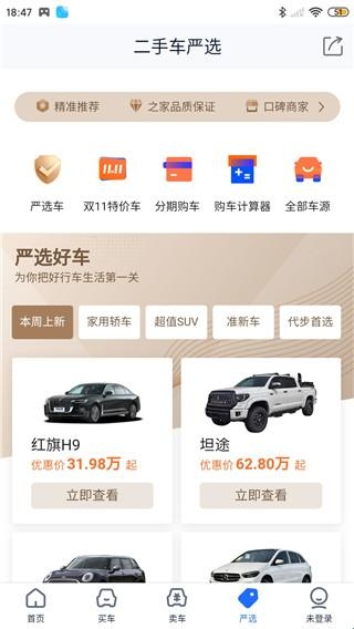1、打开二手车之家APP,顶置买,卖,估价,换车功能;