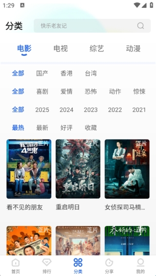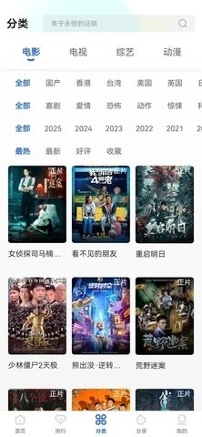 3、在分类页面中提供了电影、电视、综艺和动漫的类别,及时了解各类类别的信息;