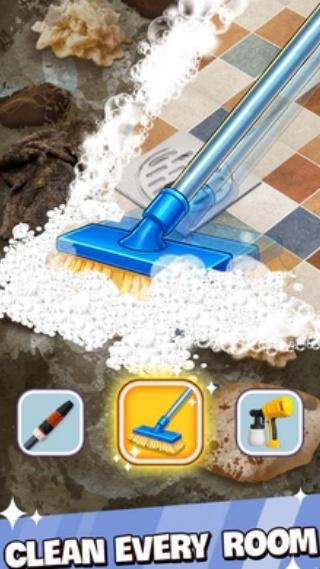 3、需合理安排清扫顺序,优先处理脏乱程度高的区域(如厨房油污区)。随着游戏进程,清洁难度和区域范围逐步提升,考验玩家的时间管理能力和清洁技巧。