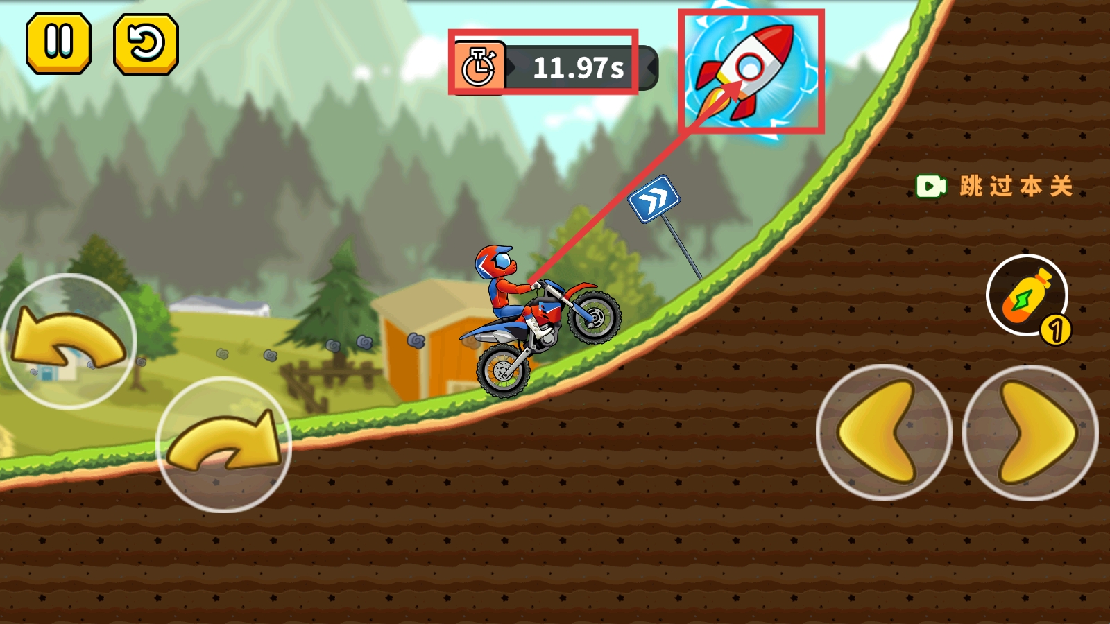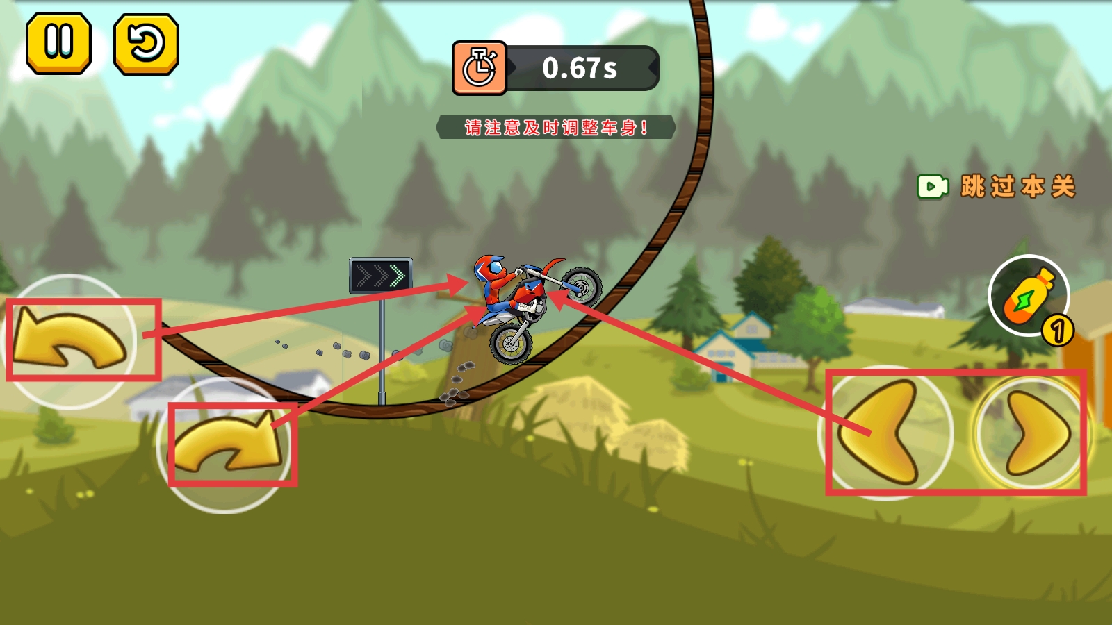2、关卡内利用左侧转向按钮、右侧平衡按钮,及时调整摩托车车身,保持行驶稳定通过弯道等地形。