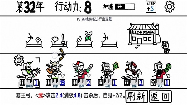 4、先去刷右上角(+5)把行动力刷多些。然后把小爆哥之外的那个武将X掉(点左边齿轮就会有武将信息上面有X)。