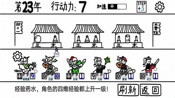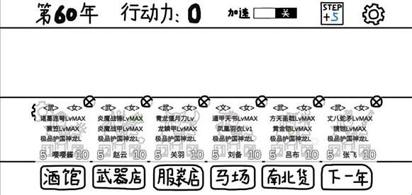 6、武器和服装前期刷不到什么好的,前期随便给武器和服装还有马。打第一年时就给。但要在30年之前必须凑够6个神龙,需要神龙buff(去马场刷)。