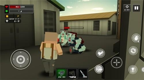 6、进入关卡后角色默认出现在一座小镇内,僵尸会陆续出现,玩家可通过屏幕左下方的摇杆控制移动。