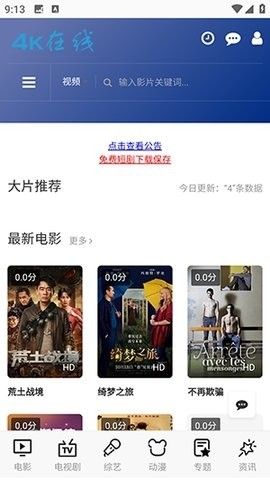 4K在线是一款免费且无广告的追剧软件。软件中不会收取用户的任何费用,有着十分直观的操作界面和强大的资源聚合能力,将全网多个平台网站的影视资源都收录在一起,方便用户轻松在线追剧,用户也能够根据剧名在全网进行搜索,想看的影视都为用户呈现哦。