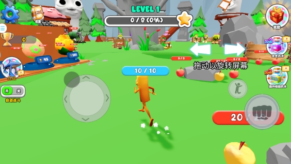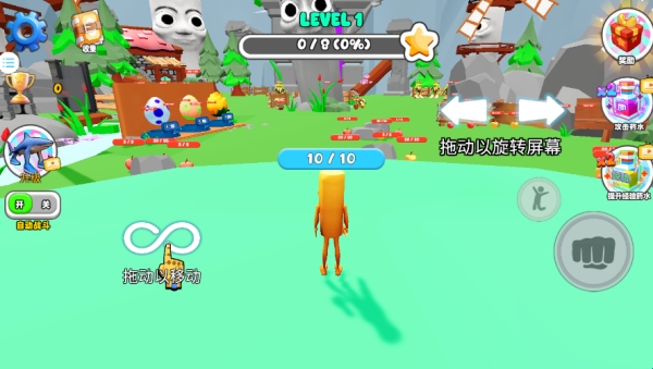 2、拖动虚杆控制角色移动,拖动右侧的箭头可以旋转屏幕。