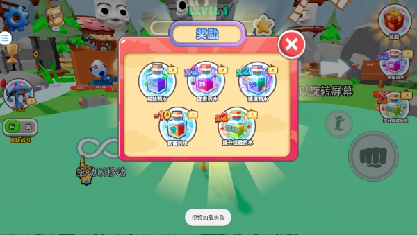 1、首次进入游戏,可以领取宝箱奖励,观看广告视频能够获得各种神奇药水。
