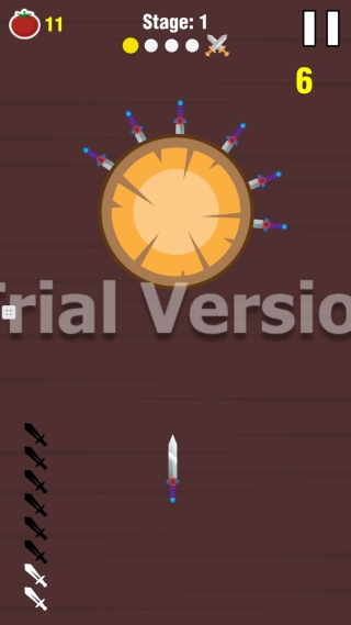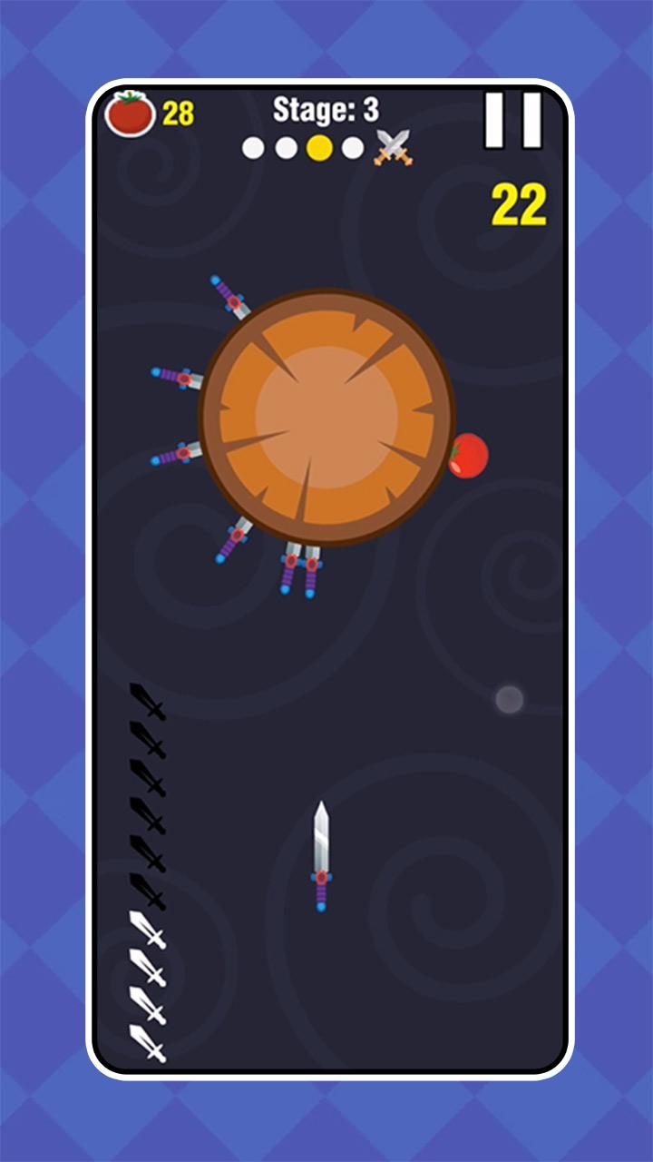 3、控制飞刀旋转的刃部接触目标,击中目标获取分数。