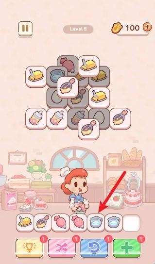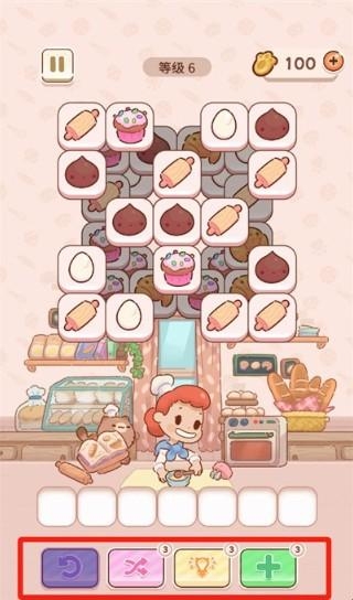 1、点击堆叠并匹配三个相同的物品进行消除,清除整个棋盘,混合更多美味的食材,烘焙出更高级别的甜度。