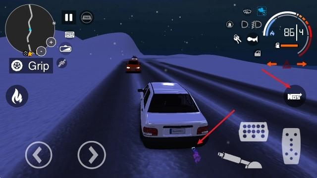 3、转弯过程中点击右侧的手刹,还能够实现漂移。