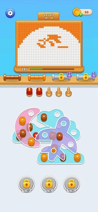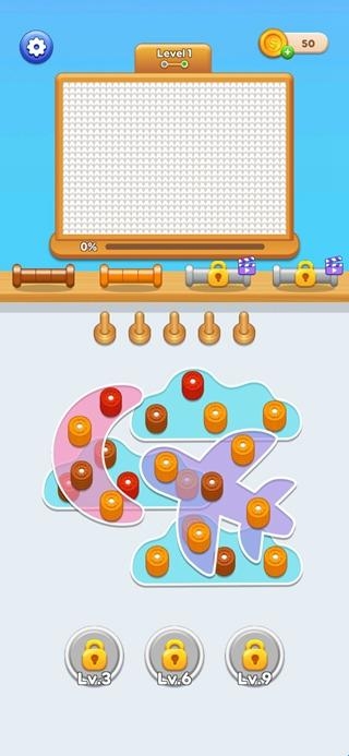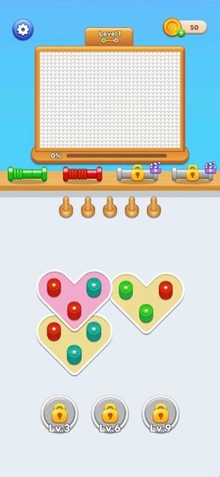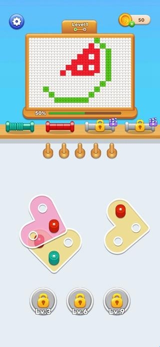 3、每个关卡中都有不同的螺丝钉,你要按照正确顺序取出大头针,解开缠绕的线头。