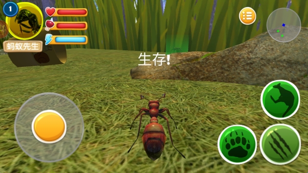 2、寻找安全的位置建造巢穴,玩家要快速提升蚂蚁的数量,面对各种昆虫都有对抗的能力。