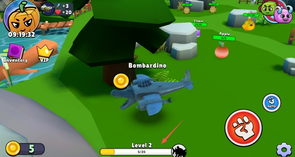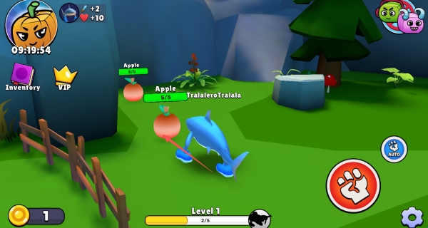 1、场景中的苹果等物品是重要资源,靠近并攻击它们,可以获得升级的经验的。
