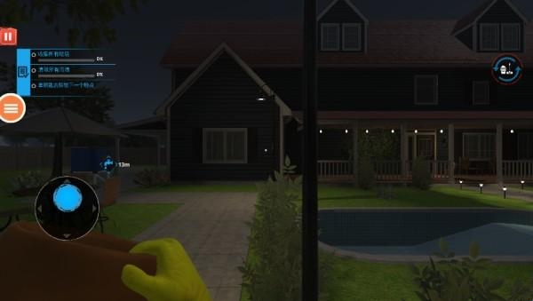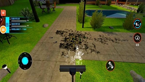 2、进入游戏,此关的任务是进入别墅,收集别墅周围的垃圾,将别墅清理干净。