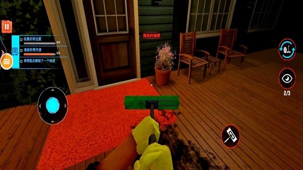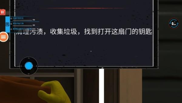3、进入别墅之前,点击开门进行互动,会提示你需要将门口的污渍和垃圾清理干净才能获得钥匙。