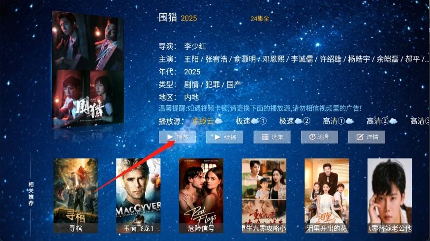 3、点开想看的影视进入到详情页,点击播放。