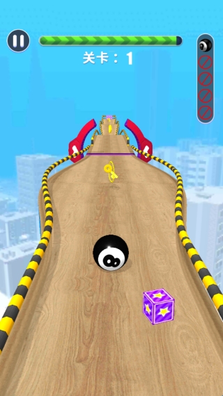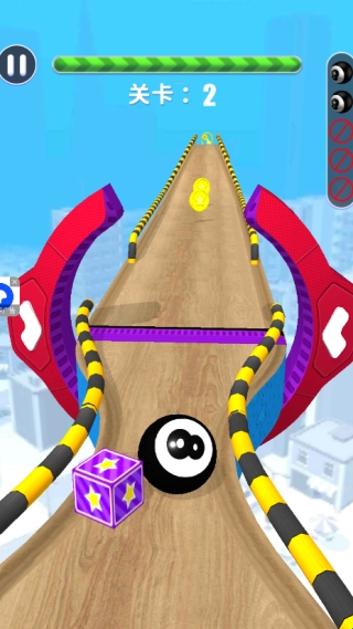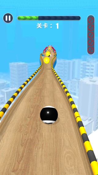 2、滑动屏幕控制球球不断的前行,躲避障碍并且收集金币。