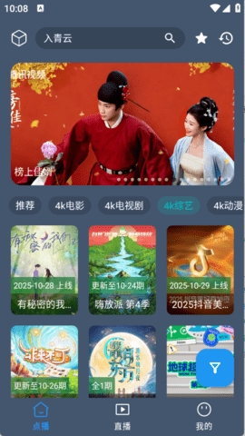 清流4K是一款聚合类的观影应用。软件中的页面设计很简单,主页会推送近期的热播动漫影片等内容,4k电影、4k电视剧、4k综艺、4k动漫等不同的专题都可以自由点击,选择自己喜欢的进行播放,用户在观影的时候不会卡顿,还可以切换不同的播放来源哦。