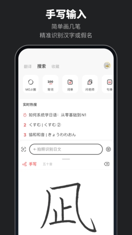 MOJi辞书(MOJi辞書)是一款能够帮助用户们轻松学习日语的软件,不管是学习单词、语法、造句还是口语或者听力都是可以的,能够适用的场景也是十分丰富的,强大且准确率高的翻译功能也是很不错的,支持多种翻译方式,而且该软件还可以让大家随时在线背单词,记录不熟练的单词,多次练习,加深记忆。