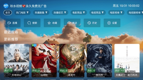 秋水TV是一款功能比较强大的在线观影追剧软件。用户在通过软件观看各类优质网络电视的同时,还可以点开电视直播,观看各个地方频道的数字节目,在首页有推送的高分优质作品,还有不同的分类排行榜单可以查看,点击播放没有广告弹窗,需要的用户快来下载吧。