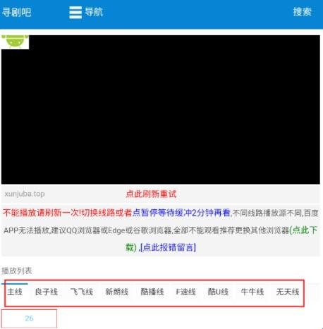 2、尝试切换不同的播放线路,播放页面为用户提供了多个播放线路,如主线、良子线、飞飞线等等,切换线路来尝试下