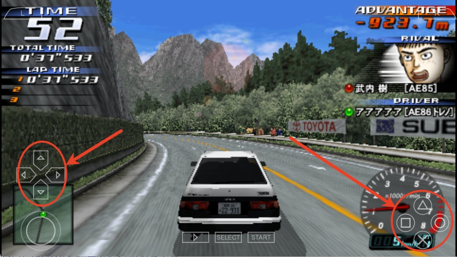 4、在游戏内左下角是车辆方向控制键,右下角X形是加速键、三角形的是视角切换键、正方形的是刹车键、O形的是确认键。